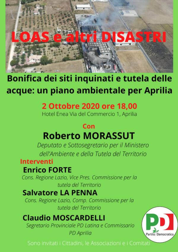 Rinviato al prossimo 2 Ottobre l’incontro del Pd di Aprilia “Loas ed altri disastri”, per un impedimento dell’onorevole Morassut.