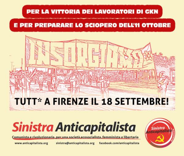 Sinistra Anticapitalista Aprilia parteciperà alla manifestazione del 18 settembre a Firenze indetta dal Collettivo di fabbrica della GKN