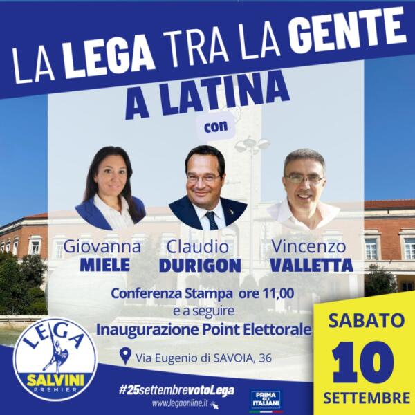 Politiche 2022: oggi a Latina la presentazione dei candidati della Lega, alla presenza del Coordinatore Regionale Claudio Durigon.