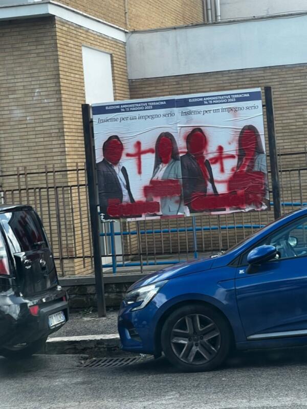 Terracina, imbrattati i manifesti elettorali di Caringi e Feudi