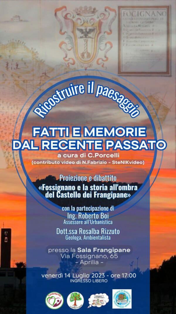 “Ricostruire il paesaggio. Fatti e memorie dal recente passato”: questo venerdì incontro al Comitato di Quartiere Fossignano di Aprilia.