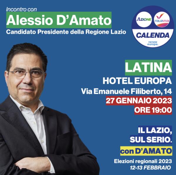 Elezioni Regionali, il candidato Presidente D’Amato il 27 Gennaio a Latina.