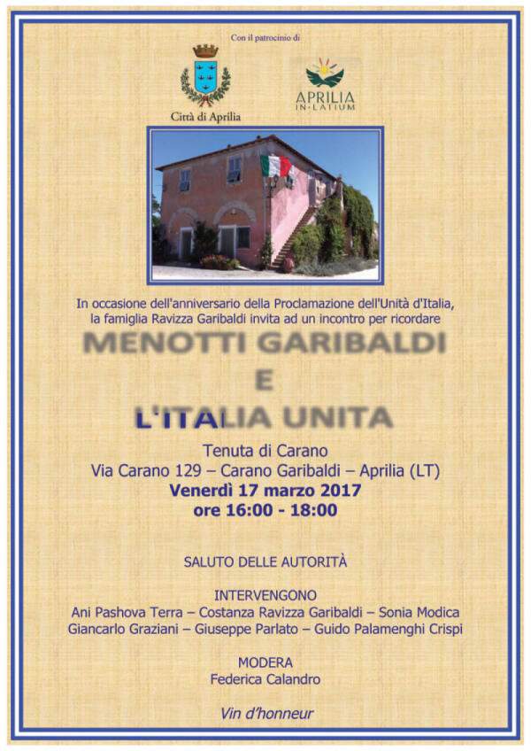 “Menotti Garibaldi e l’Italia unita”: l'incontro venerdì ad Aprilia