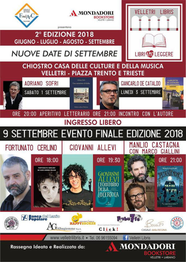 “Velletri Libris” si chiude con Fortunato Cerlino, Giovanni Allevi, Manlio Castagna e Marco Giallini.