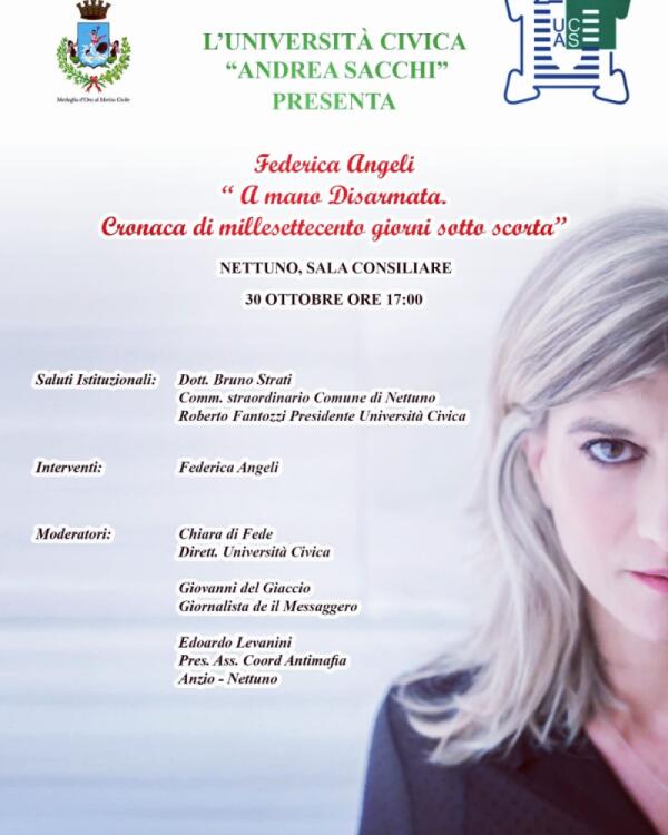 A Nettuno la presentazione del libro di Federica Angeli: "A mano disarmata. Cronaca di millesettecento giorni sotto scorta”