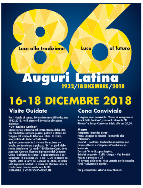 “Auguri Latina 86, luce alla tradizione, luce al futuro”: visita storico-letteraria in centro con l’associazione “Anima Latina”.