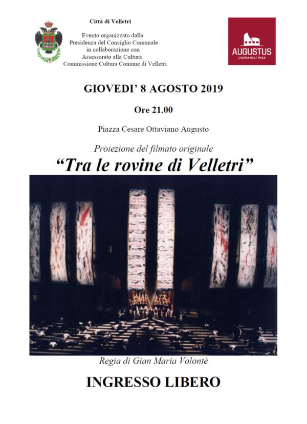 La rassegna “Cinema Sotto le Stelle” giovedì 8 agosto proietta il filmato “Tra le rovine di Velletri”.