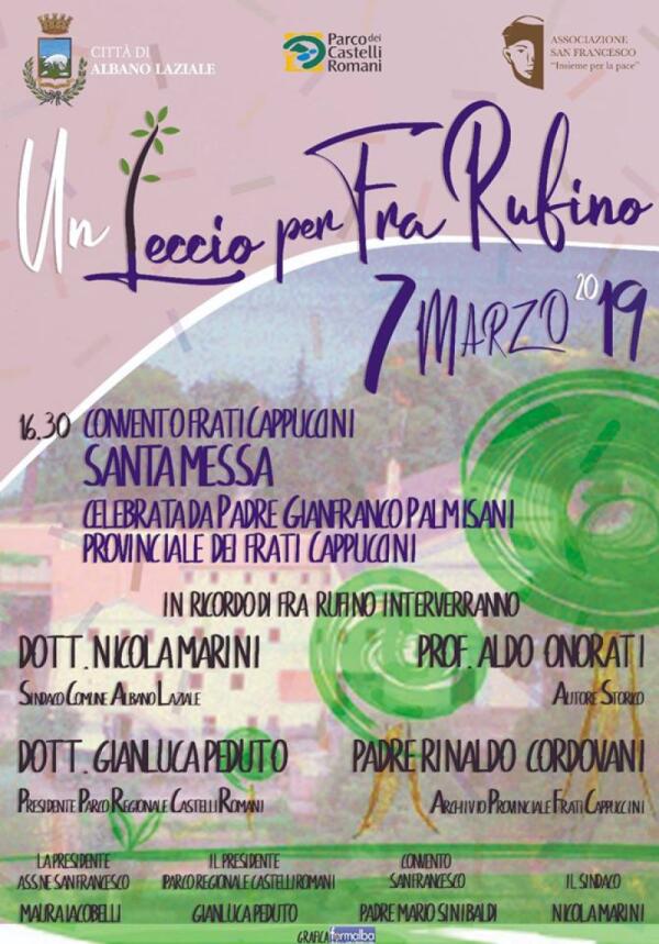 La città di Albano oggi ricorda Fra Rufino: un leccio verrà piantato al Convento dei Frati Cappuccini.