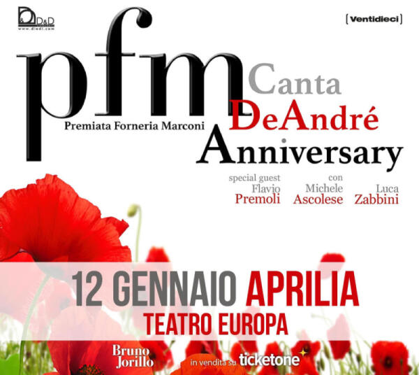 “PFM canta De André Anniversary”: venerdì 12 Gennaio il tour approda al Teatro Europa di Aprilia.
