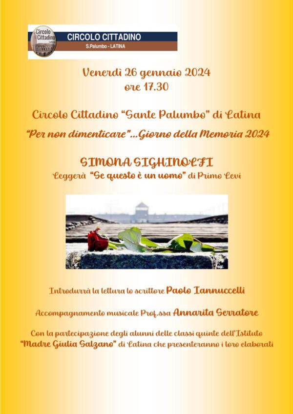 Giornata della Memoria a Latina: l'attrice e regista Simona Sighinolfi legge “Se questo è un uomo” di Primo Levi