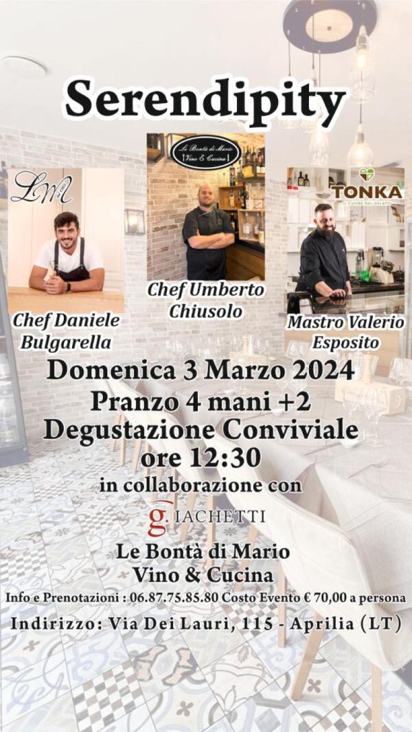 "Serendipità", ad Aprilia una degustazione conviviale a 4 mani