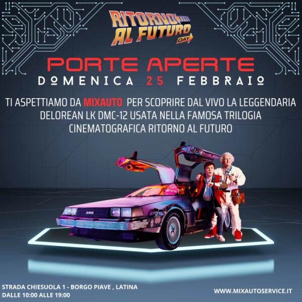 Per il "Porte aperte" da Mixauto arriva la mitica DeLorean di "Ritorno al Futuro"