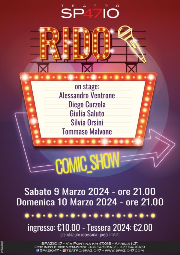 Questo fine settimana al teatro “Spazio47” di Aprilia in scena “RIDO Comic Show”.