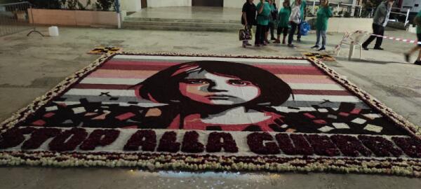 Un quadro floreale sul sagrato della Chiesa di San Michele, ad Aprilia, in occasione della festa patronale. E l'associazione "Infiorata Città di Aprilia” vola in Messico.