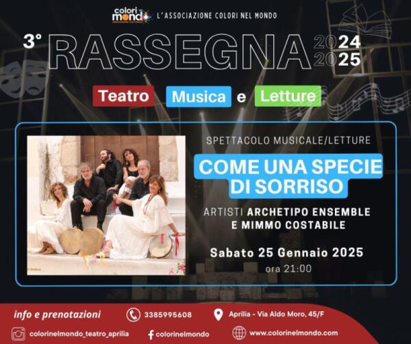 Gli “Archetipo Ensemble” e Mimmo Costabile in concerto al teatro “Colori Nel Mondo” di Aprilia con un omaggio a De Andrè.