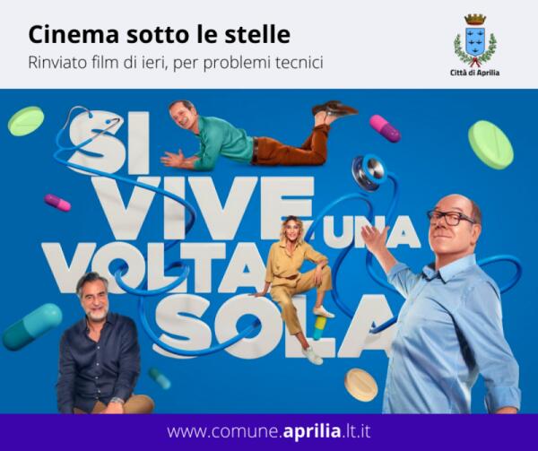 Aprilia, Cinema sotto le stelle: Rinviata la proiezione di "Si vive una volta sola"