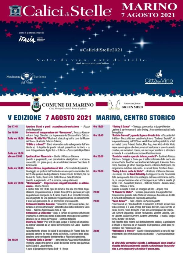 “Calici di Stelle”: a Marino sabato 7 agosto in scena eccellenze vinicole ed astronomia.