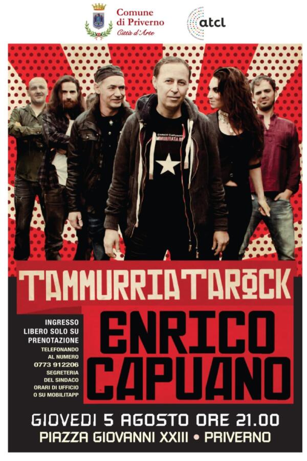 Enrico Capuano e la sua band “TammuriataRock” in concerto giovedì 5 agosto Priverno.