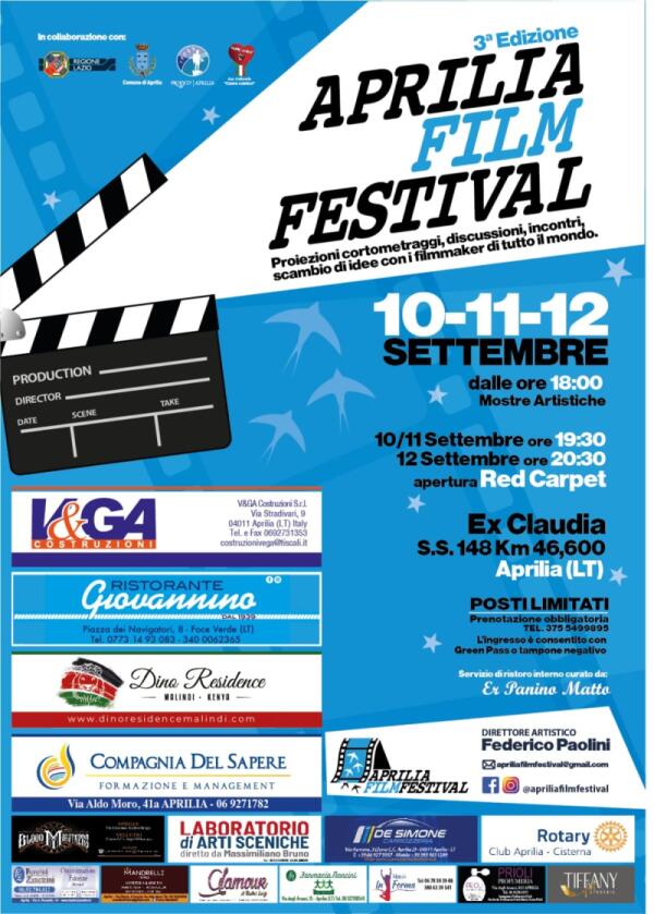 Terza edizione dell’Aprilia Film Festival questo fine settimana al Polo CulturAprilia.