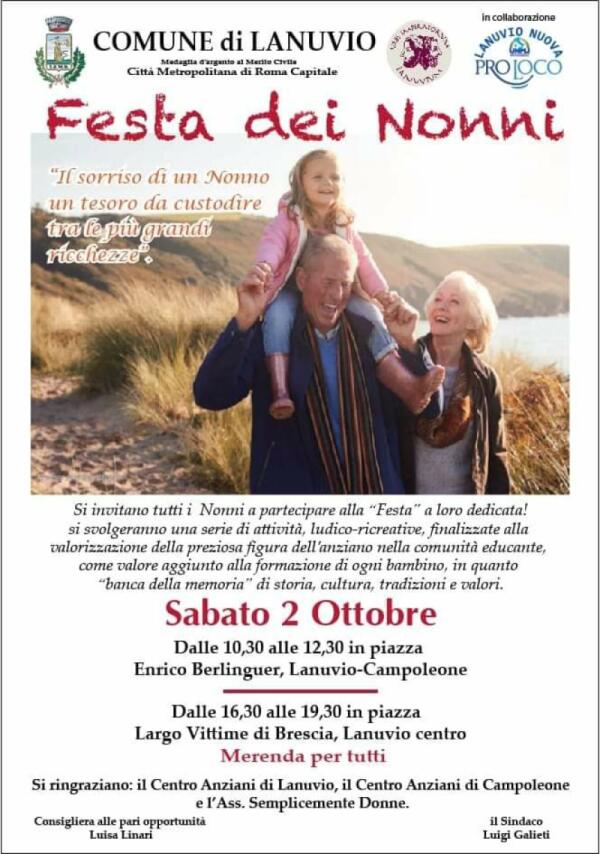 “Festa dei Nonni” il prossimo sabato 2 ottobre a Lanuvio.
