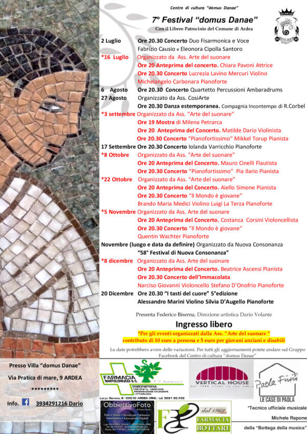 ARDEA – Questo venerdì il concerto “Pianofortissimo” nell’ambito del Festival “Domus Danae”.