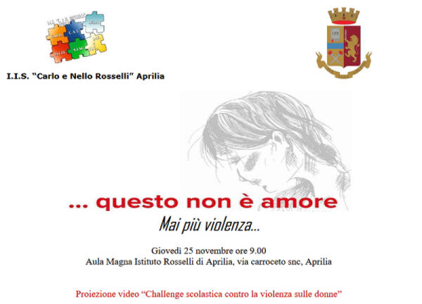 “Questo non è amore. Mai più violenza…”: questo giovedì al Rosselli di Aprilia l’evento organizzato con la Questura di Latina.