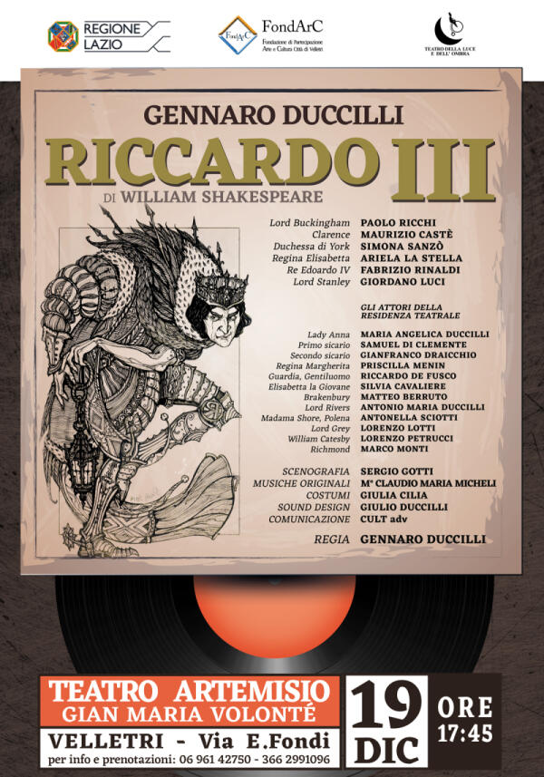 “Riccardo III” per la regia di Gennaro Duccilli al Teatro Artemisio-Volontè di Velletri domenica 19 dicembre