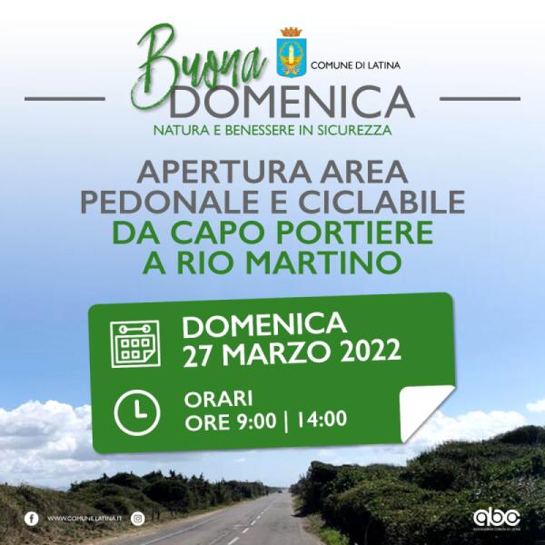 Domenica 27 marzo torna sul lungomare di Latina l’iniziativa del Comune denominata “Buona Domenica”.