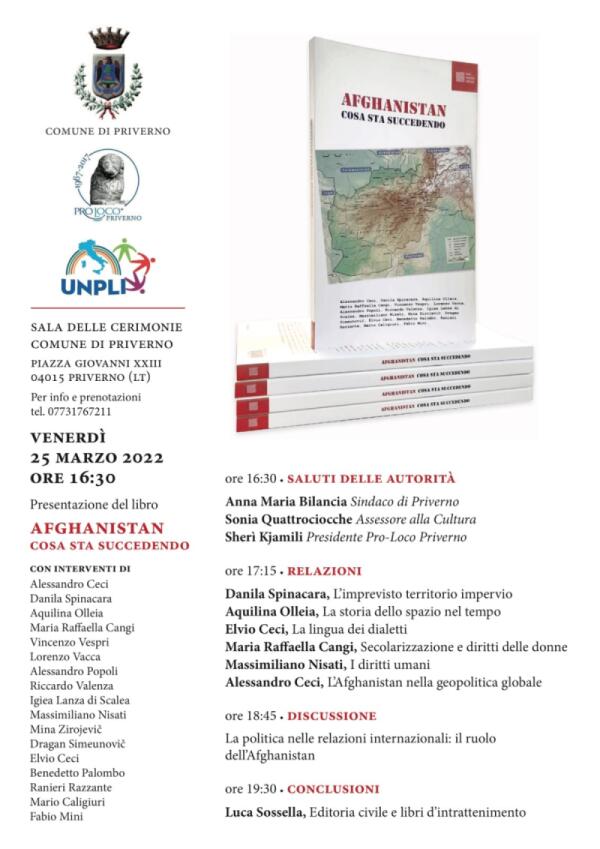 Oggi pomeriggio a Priverno la presentazione del libro “Afghanistan: cosa sta succedendo”.