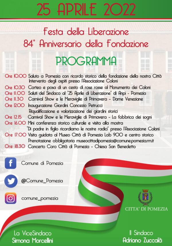 Festeggiamenti il 25 Aprile anche a Pomezia, dove si celebra anche l’84esimo anniversario della Fondazione della Città.