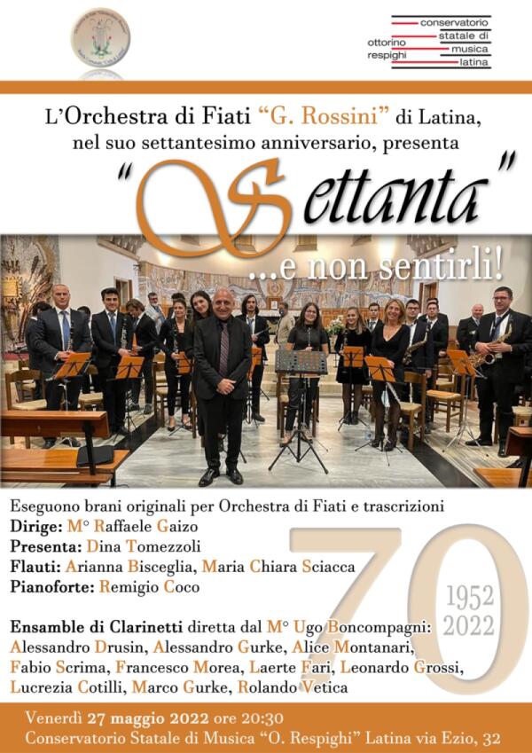“Settanta…e non sentirli!”: venerdì 27 maggio a Latina il concerto dell’Orchestra di fiati “Rossini” che compie 70 anni.