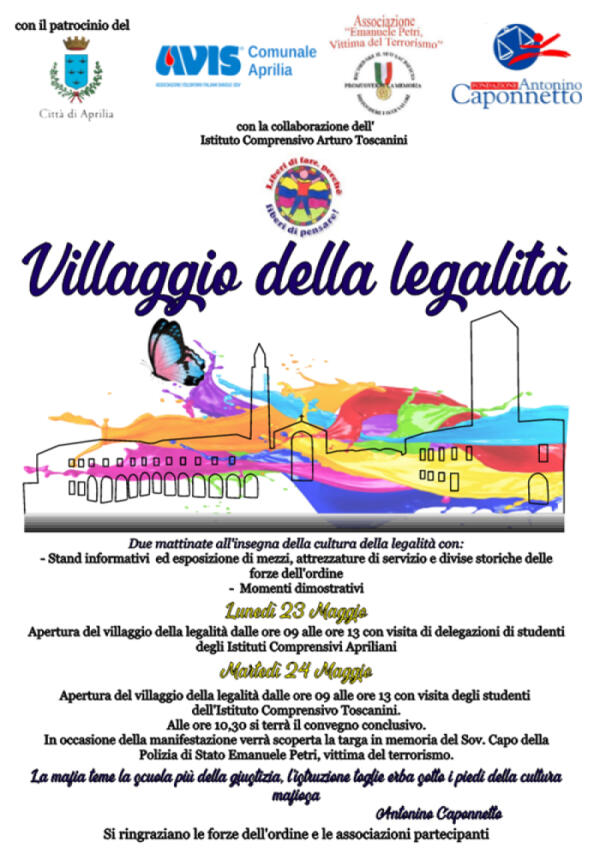 30esimo anniversario della strage di Capaci. Ad Aprilia altra giornata con il “Villaggio della legalità” con la Fondazione Caponnetto e l’Avis Comunale.