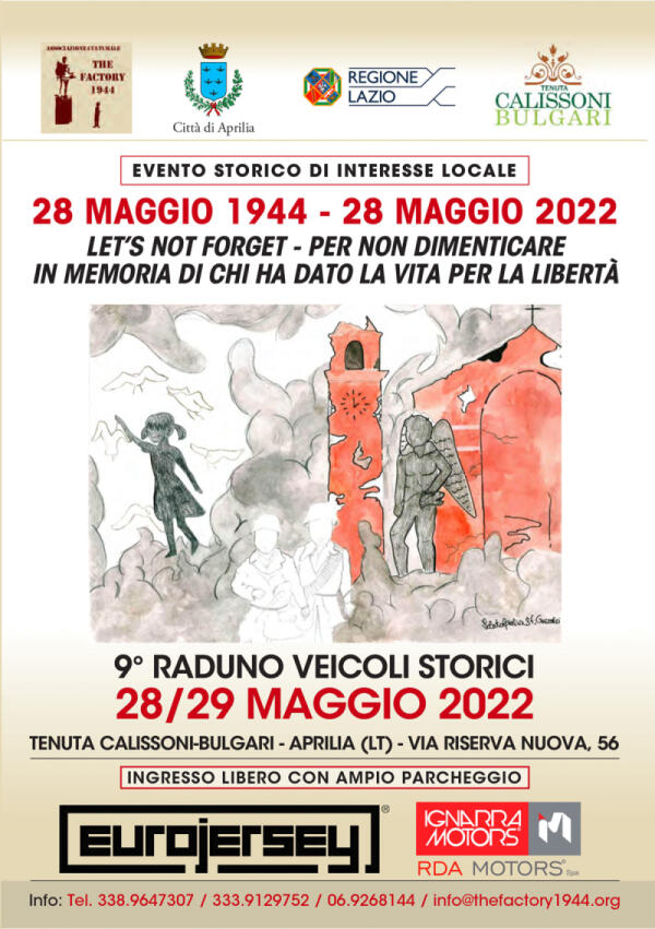 Venerdì 27 maggio manifestazione celebrativa per ricordare la “Battaglia di Aprilia”. Alla tenuta Calissoni nel weekend il raduno di veicoli storici di “The Factory 1944”.