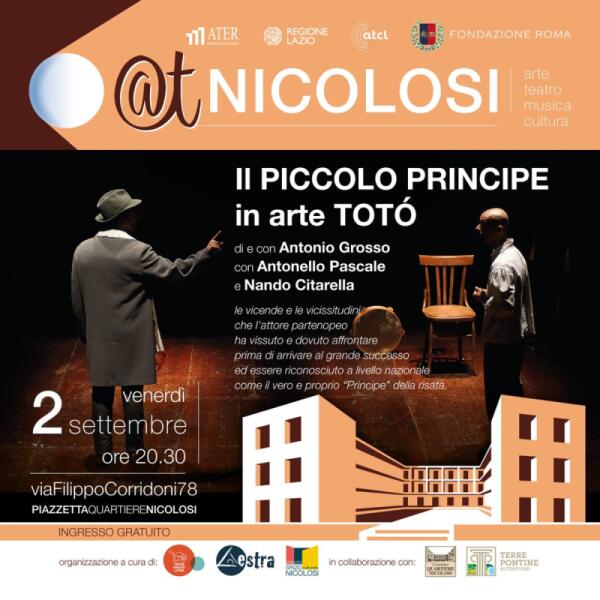 Questo venerdì 2 settembre nella piazzetta del quartiere Nicolosi, a Latina, lo spettacolo “Il Piccolo Principe in arte Totò”.