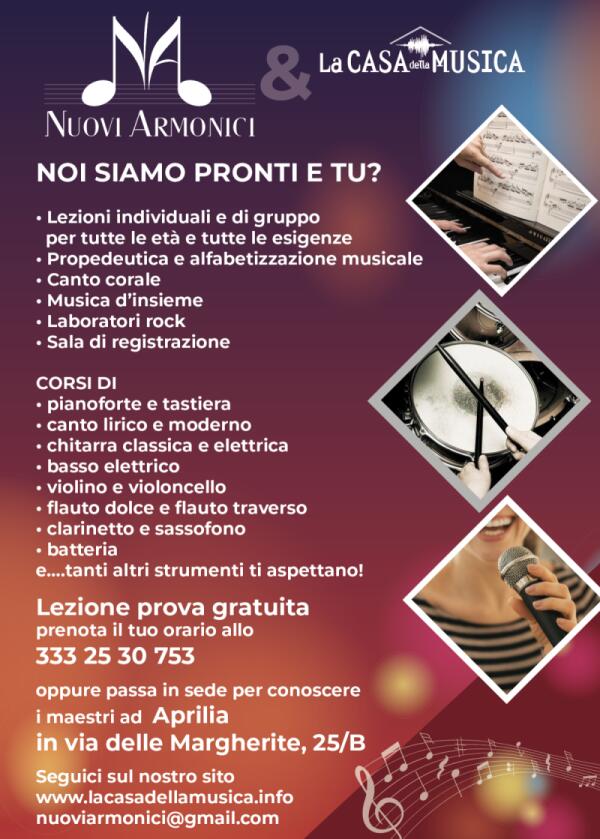 L’associazione “La Casa della Musica” di Aprilia avvia i corsi di strumento musicale ed i laboratori musicali.