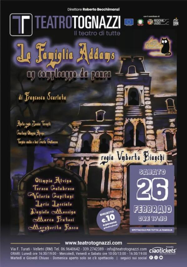 Al Teatro Tognazzi di Velletri sabato 26 Febbraio lo spettacolo “La Famiglia Addams. Un compleanno da paura”.
