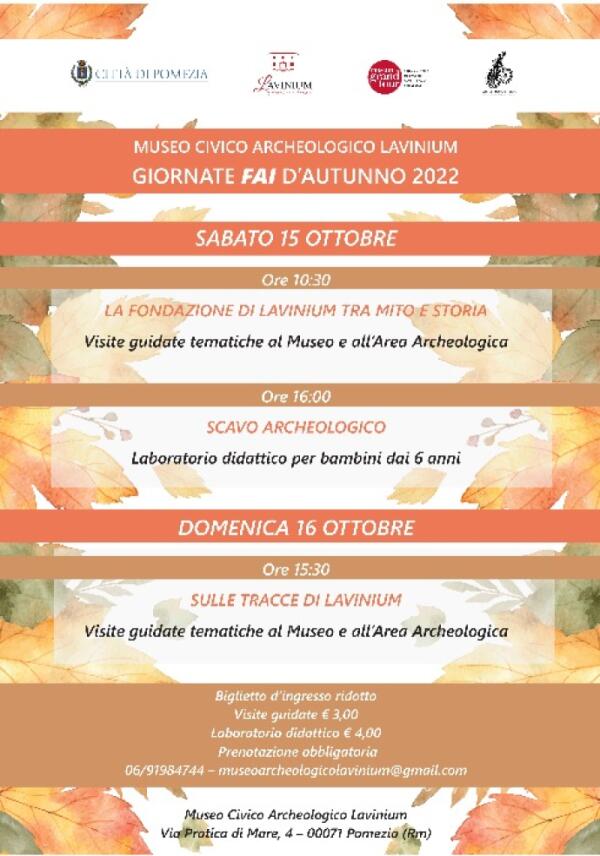 “Giornate Fai d’Autunno”. Visite guidate questo fine settimana al Museo Civico Archeologico Lavinium di Pomezia.