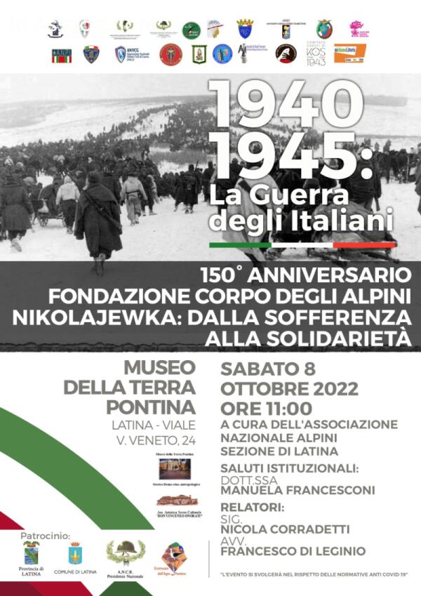 Latina - Al Museo della Terra Pontina conferenza sul 150esimo anniversario della fondazione del Corpo degli Alpini