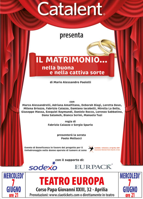 Al Teatro Europa di Aprilia stasera uno spettacolo teatrale a favore dell’Andos. In scena i dipendenti della Catalent.