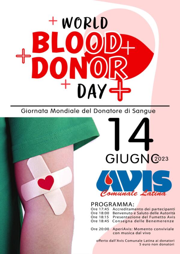 “Festa del Donatore 2023” mercoledì 14 giugno presso l’Avis Comunale di Latina.