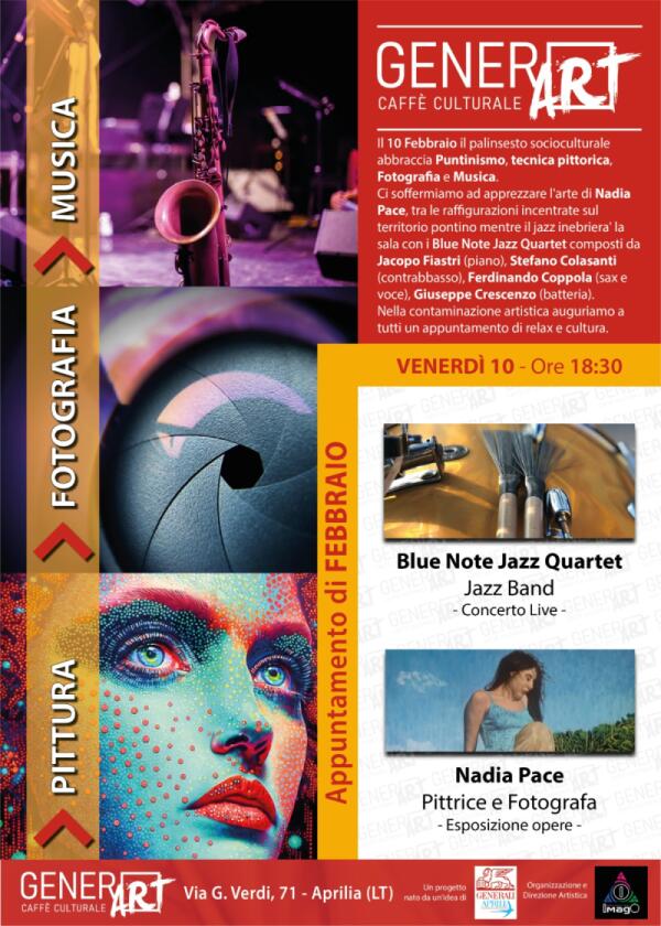 L’arte di Nadia Pace e musica jazz oggi ad Aprilia per il nuovo incontro della rassegna “GenerART”.