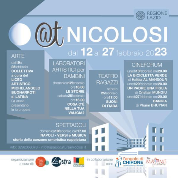 LATINA - @t Nicolosi: teatro, arte, cinema, musica dal 12 al 27 febbraio all’interno della storica piazza del quartiere.