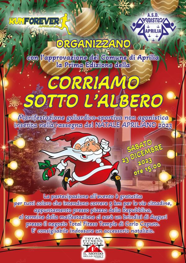 “Corriamo sotto l’Albero”: sabato 23 Dicembre ad Aprilia la 5 chilometri goliardico-sportiva.