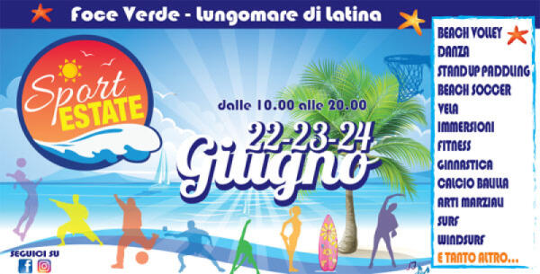 Dal 22 al 24 giugno a Foce Verde, sul lungomare di Latina, torna “Sport Estate”.
