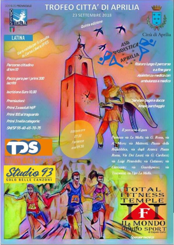 “Trofeo città di Aprilia”: domenica 23 settembre l'evento della “Podistica Aprilia”.