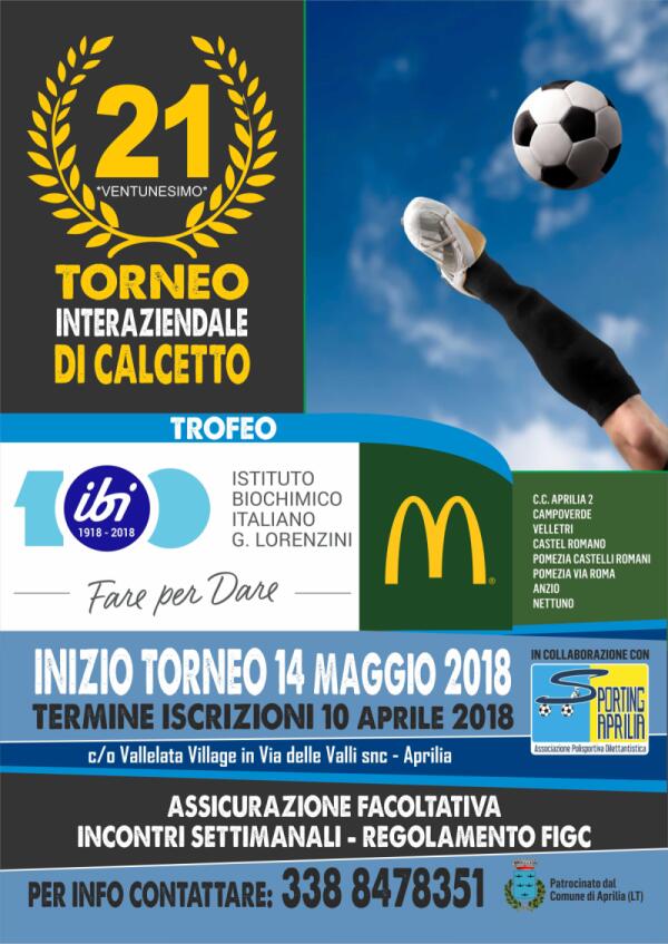 Aprilia - 21esima edizione per il Torneo Interaziendale di calcetto, aperte le iscrizioni