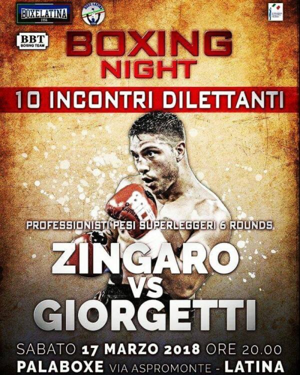 BOXE - A Latina il match Zingaro vs Giorgetti