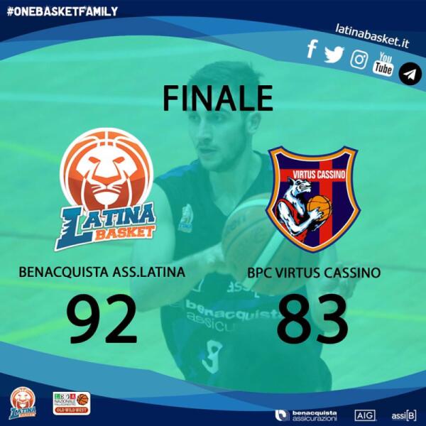 Basket serie A2: Latina s'impone sulla Virtus Cassino per 92-83.