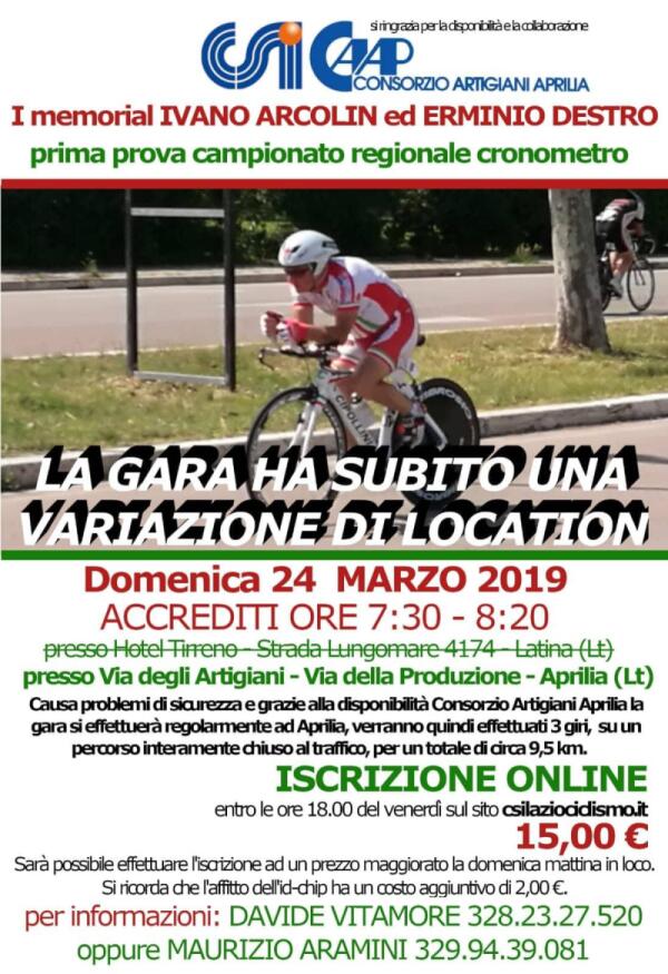 Ciclismo, questa domenica ad Aprilia la prima prova del Campionato Regionale a Cronometro.