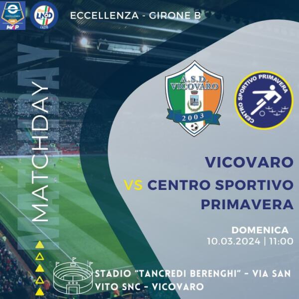 Calcio di Eccellenza: il Centro Sportivo Primavera di Aprilia in casa dell’Asd Vicovaro.
